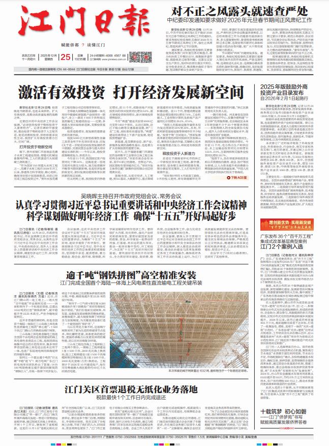 - ① 凡本网注明"稿件来源:江门日报"的所有文字、图片和音视频稿件,版权均属江门日报社所有,任何媒体、网站或个人未经本网协议授权不得复制或转载。已经本网协议授权的媒体、网站,在下载使用时必须注明"稿件来源:江门日报",违者本网将依法追究责任。