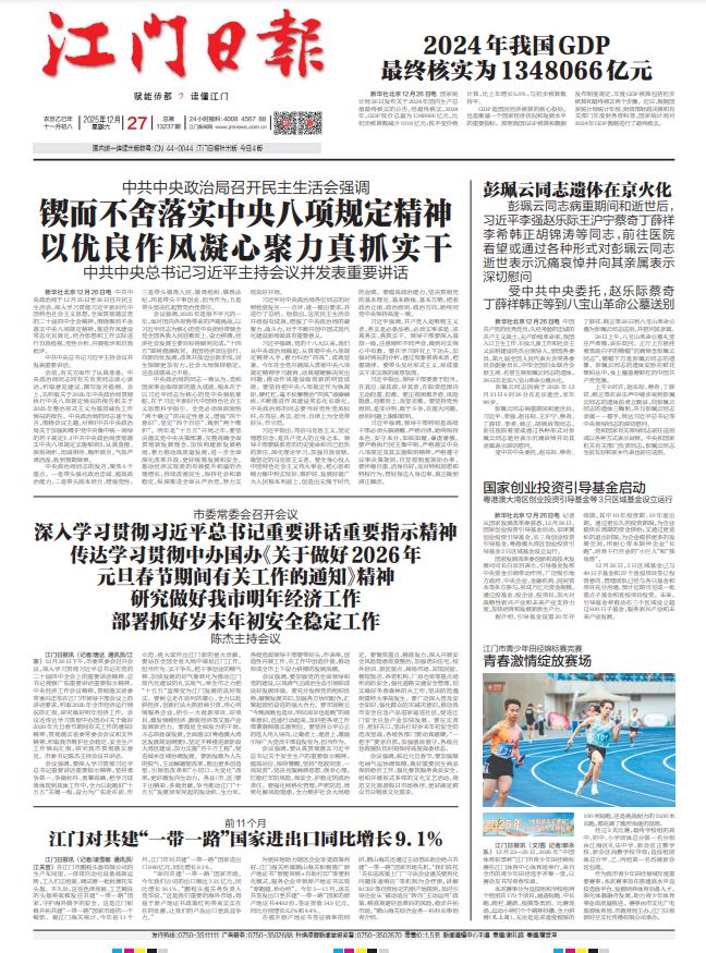- ② 本网未注明"稿件来源:江门日报"的文/图等稿件均为转载稿,如其他媒体、网站或个人从本网下载使用,必须保留本网注明的"稿件来源",并自负版权等法律责任。