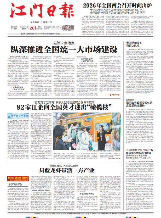 - ② 本网未注明"稿件来源:江门日报"的文/图等稿件均为转载稿,如其他媒体、网站或个人从本网下载使用,必须保留本网注明的"稿件来源",并自负版权等法律责任。