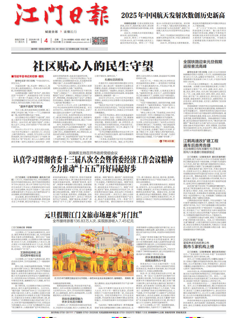 - ① 凡本网注明"稿件来源:江门日报"的所有文字、图片和音视频稿件,版权均属江门日报社所有,任何媒体、网站或个人未经本网协议授权不得复制或转载。已经本网协议授权的媒体、网站,在下载使用时必须注明"稿件来源:江门日报",违者本网将依法追究责任。