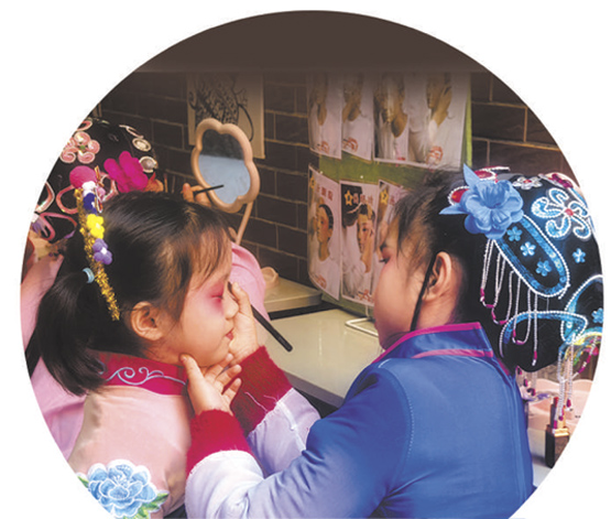 “粤韵风华”中,孩子们在梳妆打扮,准备表演。