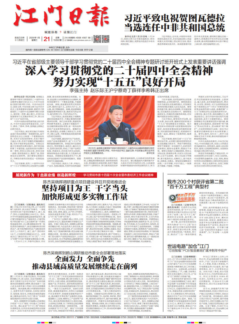 - ② 本网未注明"稿件来源:江门日报"的文/图等稿件均为转载稿,如其他媒体、网站或个人从本网下载使用,必须保留本网注明的"稿件来源",并自负版权等法律责任。