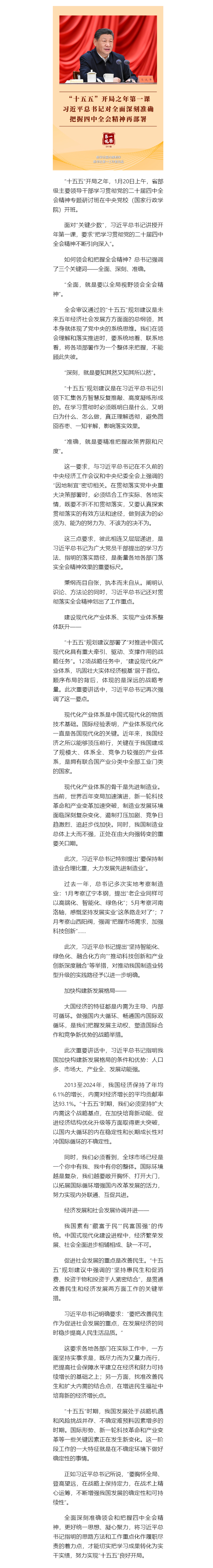 第一观察|“十五五”开局之年第一课,习近平总书记对全面深刻准确把握四中全会精神再部署