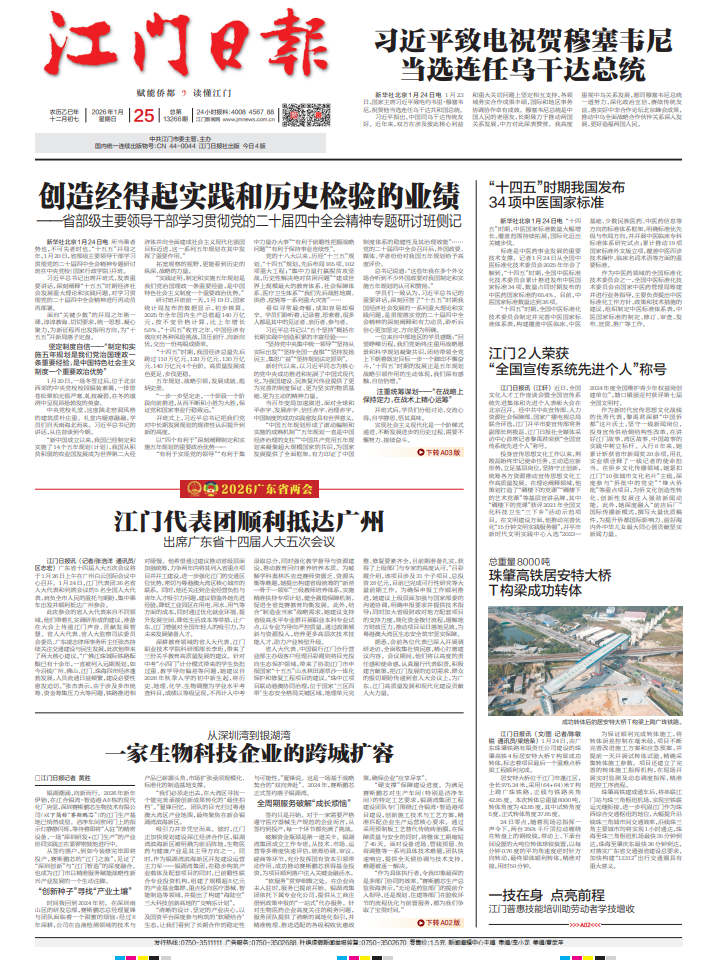 - ② 本网未注明"稿件来源:江门日报"的文/图等稿件均为转载稿,如其他媒体、网站或个人从本网下载使用,必须保留本网注明的"稿件来源",并自负版权等法律责任。
