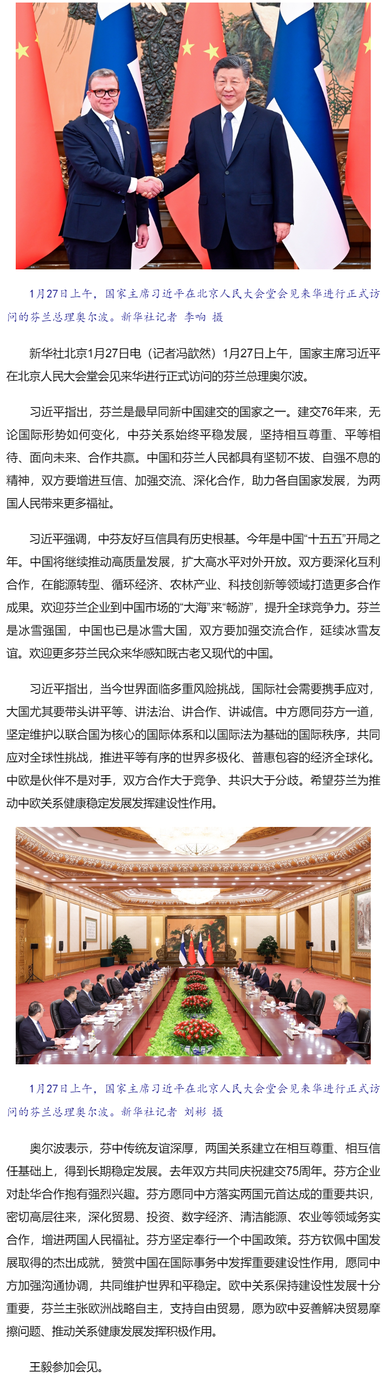 习近平会见芬兰总理奥尔波