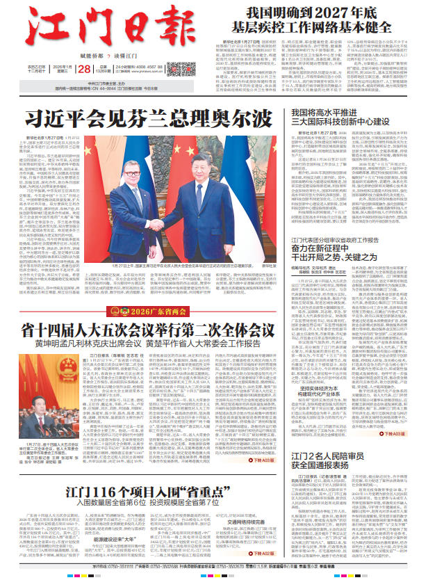 - ② 本网未注明"稿件来源:江门日报"的文/图等稿件均为转载稿,如其他媒体、网站或个人从本网下载使用,必须保留本网注明的"稿件来源",并自负版权等法律责任。