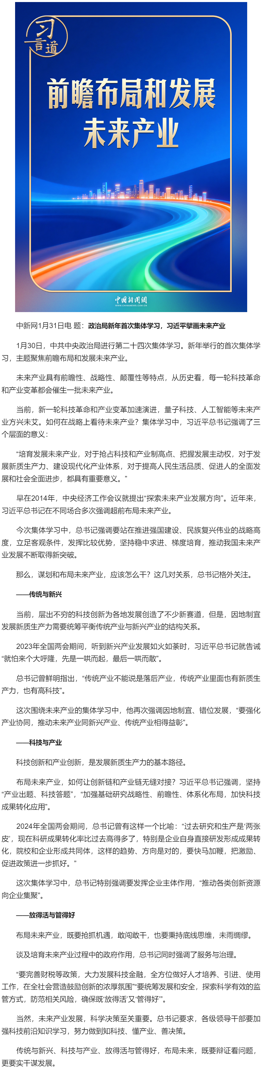 习言道 | 政治局新年首次集体学习,习近平擘画未来产业