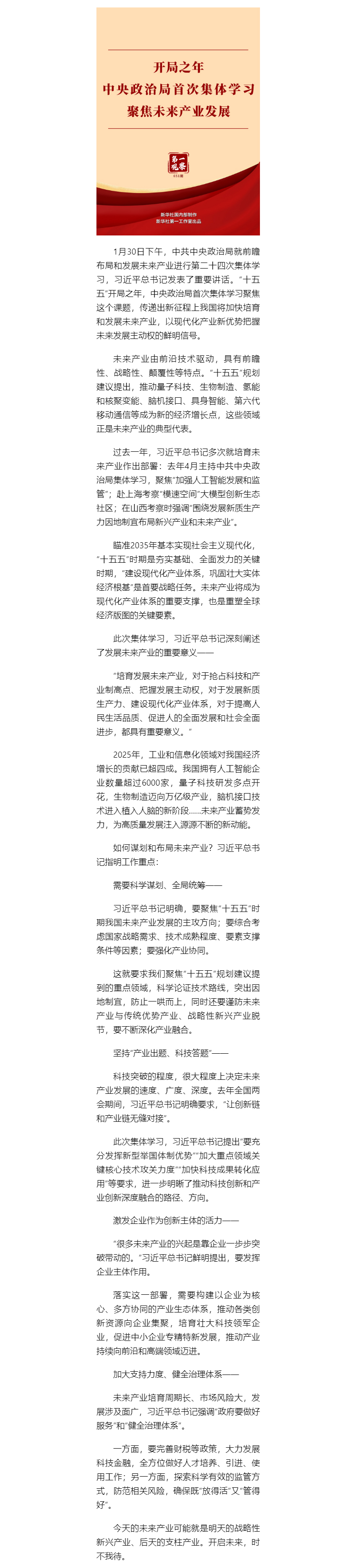 第一观察|开局之年中央政治局首次集体学习聚焦未来产业发展