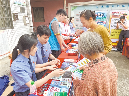 开平市检察院在开平赤水镇开展普法活动,将法律知识送到乡镇。