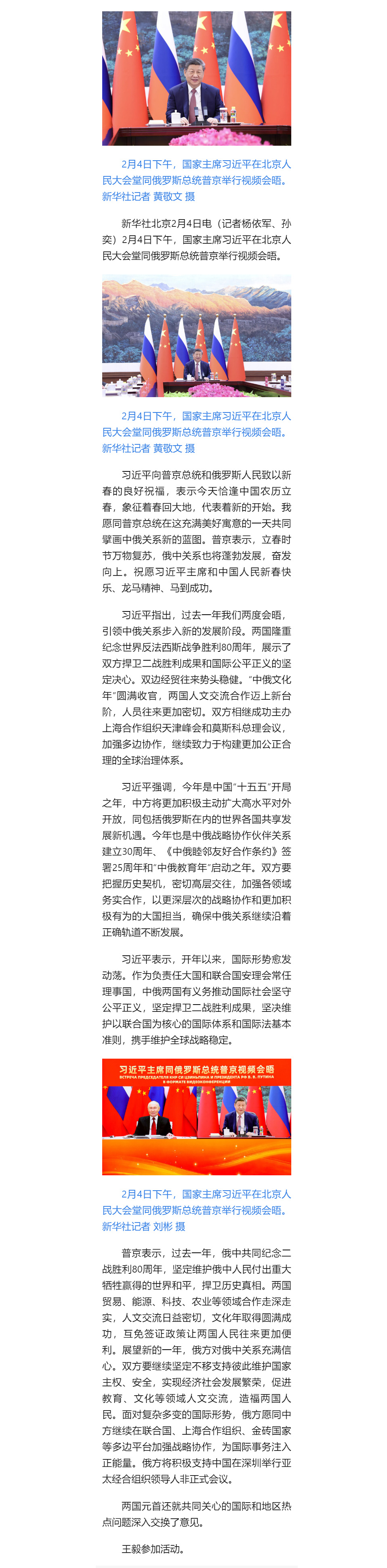 习近平同俄罗斯总统普京举行视频会晤
