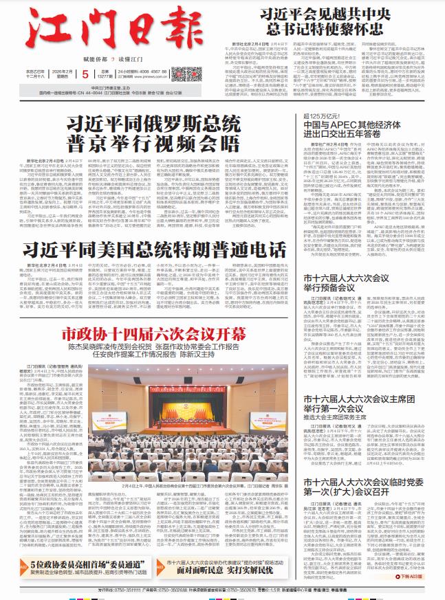 - ① 凡本网注明"稿件来源:江门日报"的所有文字、图片和音视频稿件,版权均属江门日报社所有,任何媒体、网站或个人未经本网协议授权不得复制或转载。已经本网协议授权的媒体、网站,在下载使用时必须注明"稿件来源:江门日报",违者本网将依法追究责任。