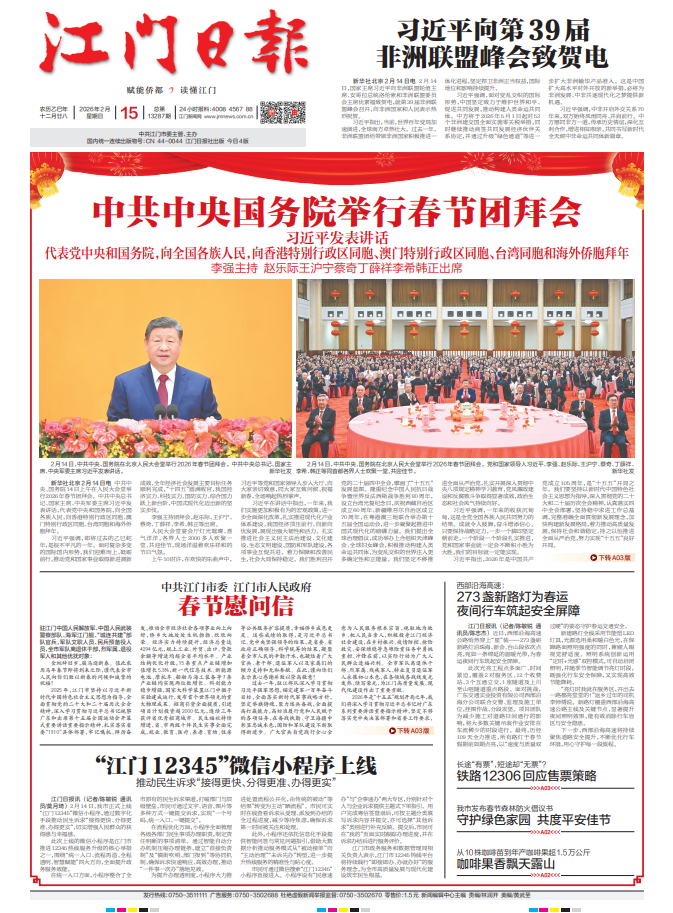 - ② 本网未注明"稿件来源:江门日报"的文/图等稿件均为转载稿,如其他媒体、网站或个人从本网下载使用,必须保留本网注明的"稿件来源",并自负版权等法律责任。