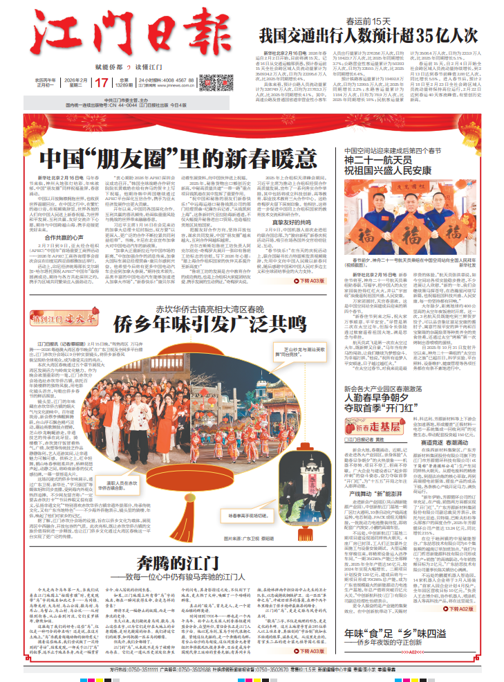 - ② 本网未注明"稿件来源:江门日报"的文/图等稿件均为转载稿,如其他媒体、网站或个人从本网下载使用,必须保留本网注明的"稿件来源",并自负版权等法律责任。