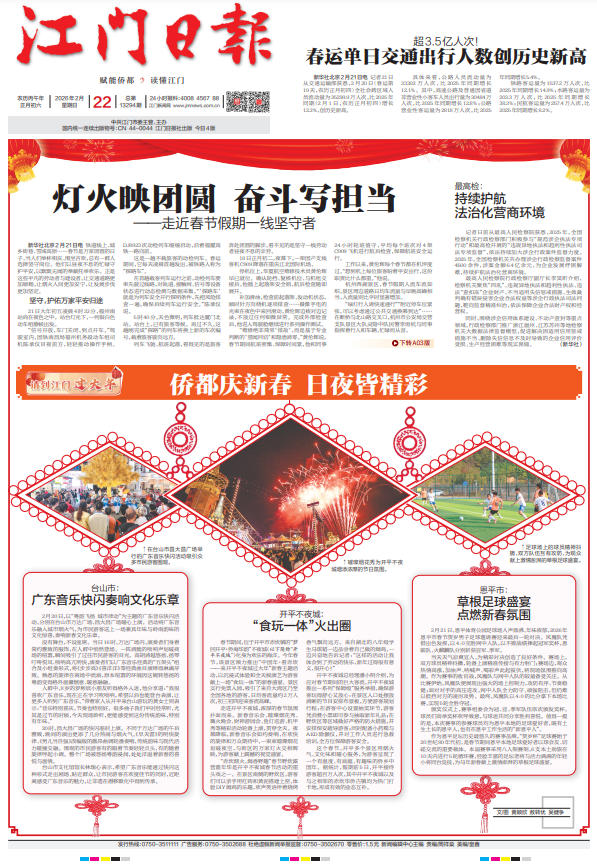 - ② 本网未注明"稿件来源:江门日报"的文/图等稿件均为转载稿,如其他媒体、网站或个人从本网下载使用,必须保留本网注明的"稿件来源",并自负版权等法律责任。