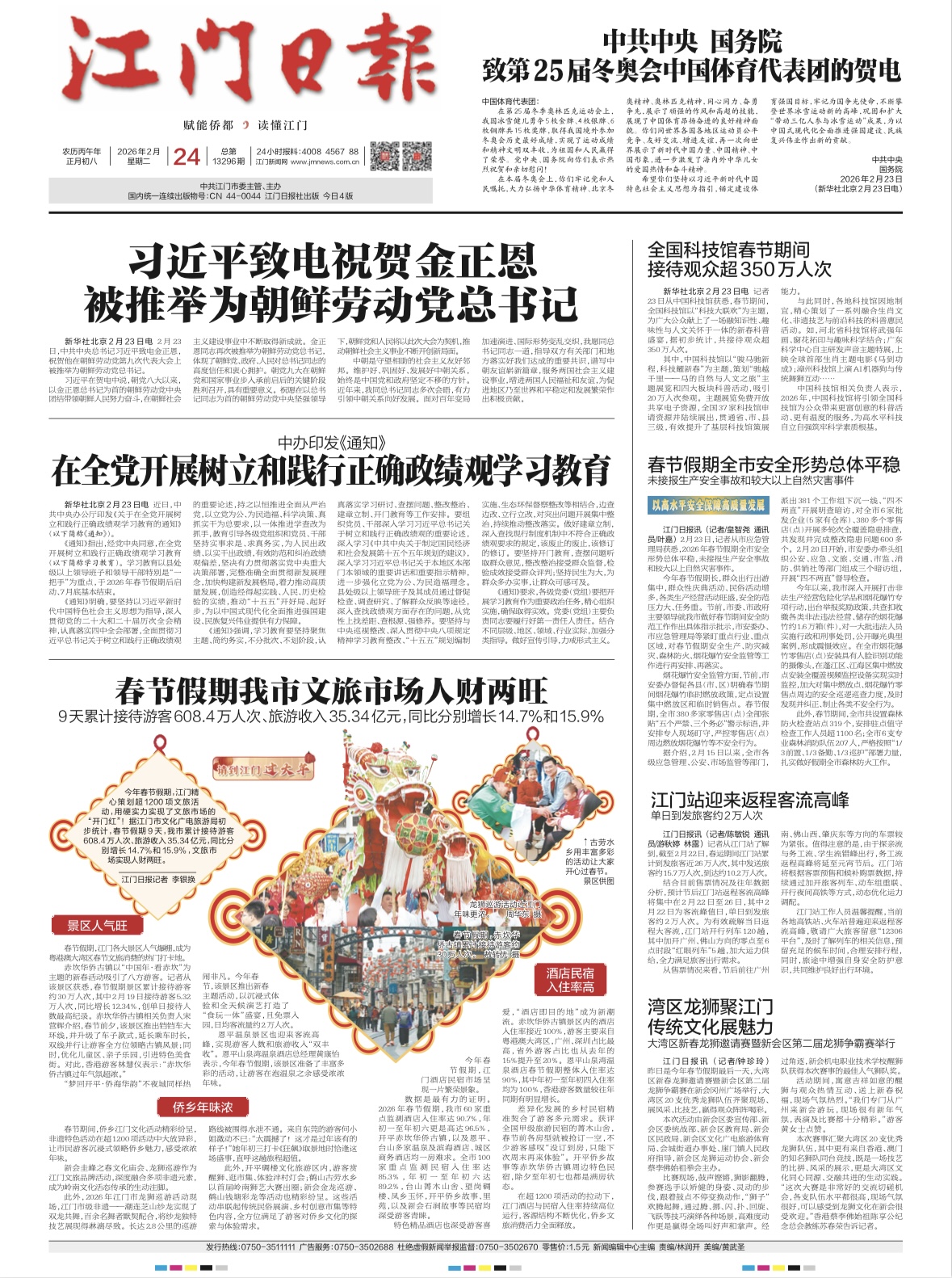 - ② 本网未注明"稿件来源:江门日报"的文/图等稿件均为转载稿,如其他媒体、网站或个人从本网下载使用,必须保留本网注明的"稿件来源",并自负版权等法律责任。