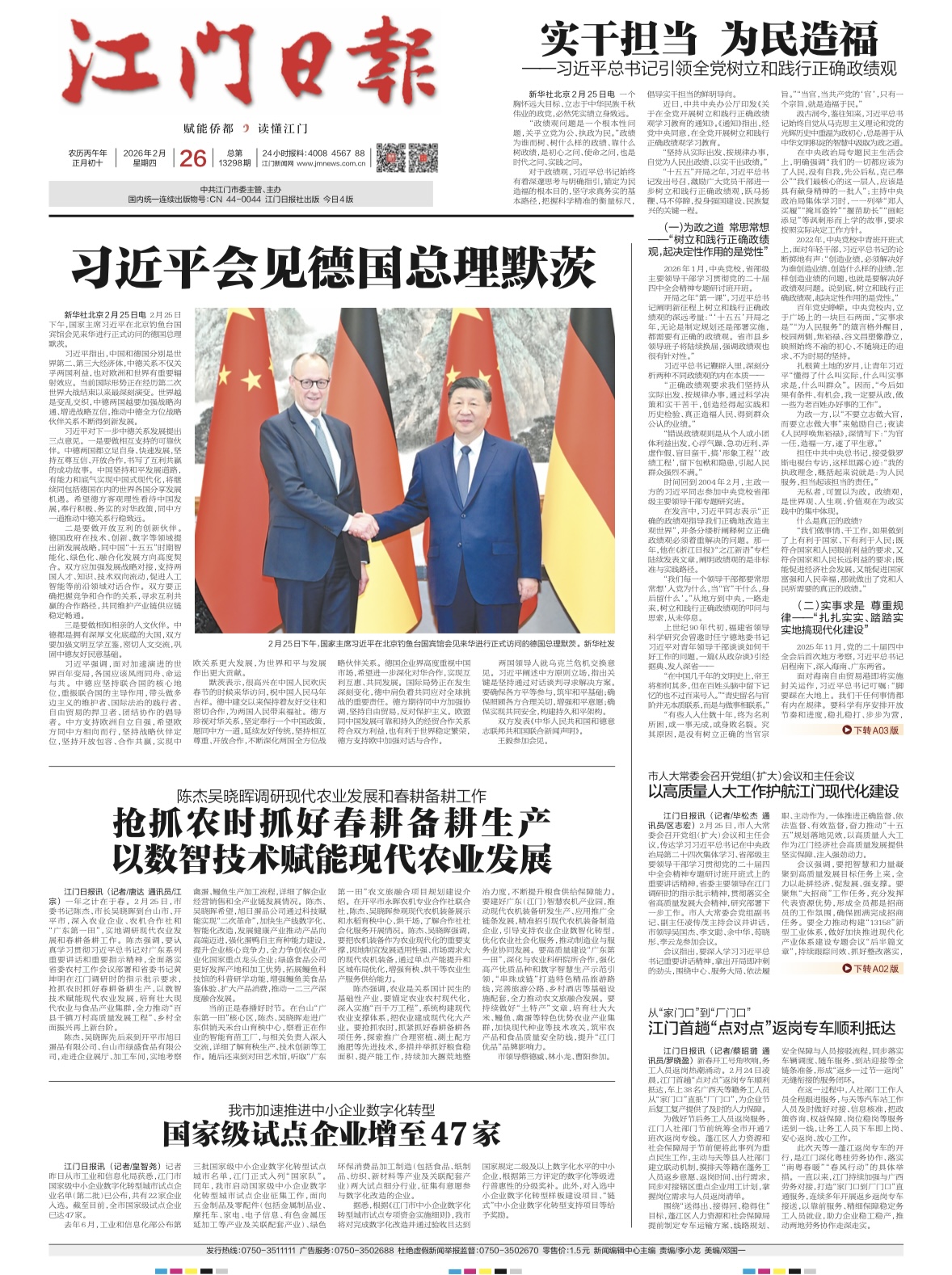 - ① 凡本网注明"稿件来源:江门日报"的所有文字、图片和音视频稿件,版权均属江门日报社所有,任何媒体、网站或个人未经本网协议授权不得复制或转载。已经本网协议授权的媒体、网站,在下载使用时必须注明"稿件来源:江门日报",违者本网将依法追究责任。