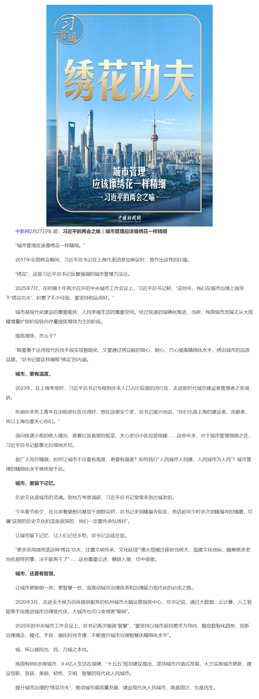 习近平的两会之喻|城市管理应该像绣花一样精细