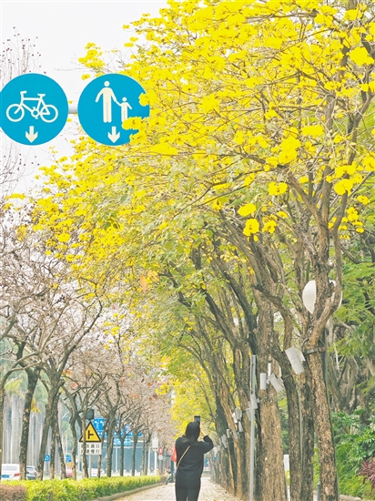 春日微风拂过,黄花风铃木如金黄仙子,为江门绘就了满城尽带“黄金甲”的绝美画卷。