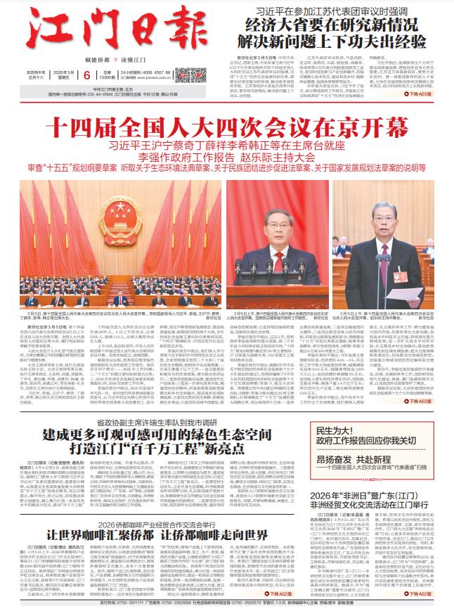 - ② 本网未注明"稿件来源:江门日报"的文/图等稿件均为转载稿,如其他媒体、网站或个人从本网下载使用,必须保留本网注明的"稿件来源",并自负版权等法律责任。
