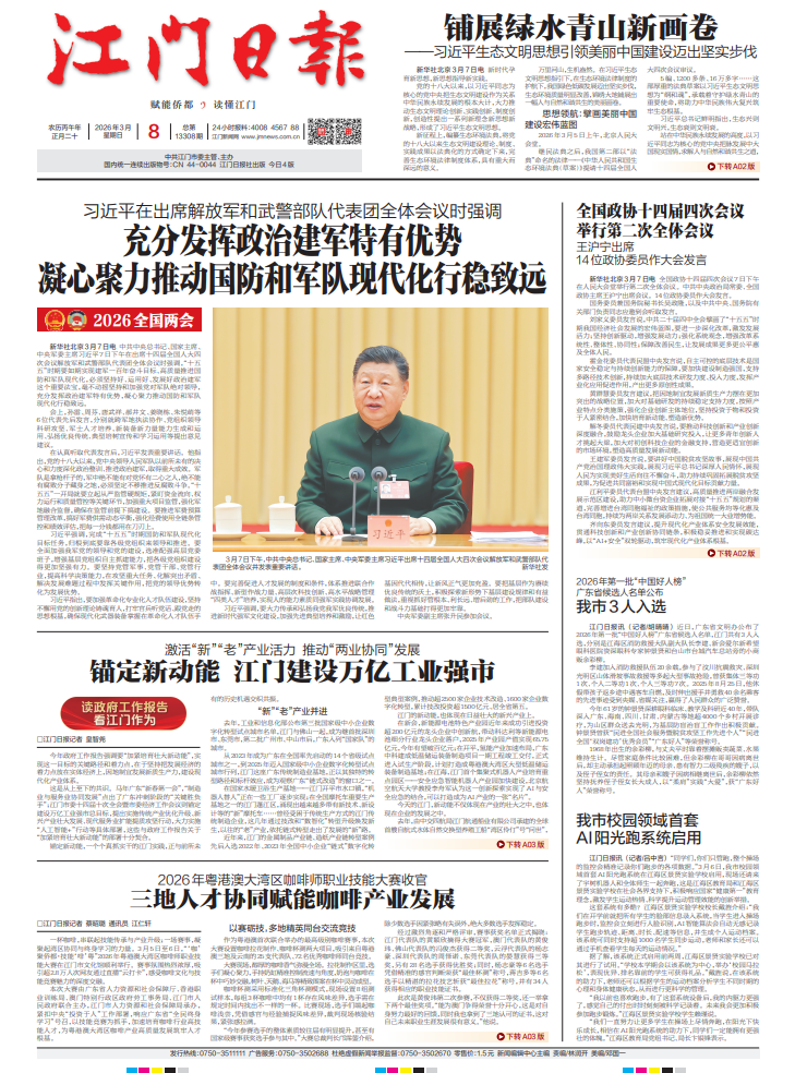 - ② 本网未注明"稿件来源:江门日报"的文/图等稿件均为转载稿,如其他媒体、网站或个人从本网下载使用,必须保留本网注明的"稿件来源",并自负版权等法律责任。