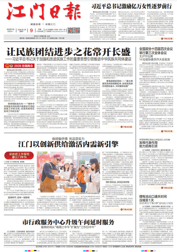 - ② 本网未注明"稿件来源:江门日报"的文/图等稿件均为转载稿,如其他媒体、网站或个人从本网下载使用,必须保留本网注明的"稿件来源",并自负版权等法律责任。