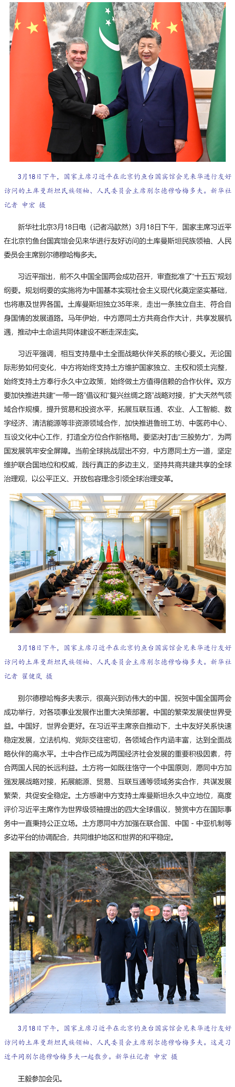 习近平会见土库曼斯坦民族领袖、人民委员会主席别尔德穆哈梅多夫