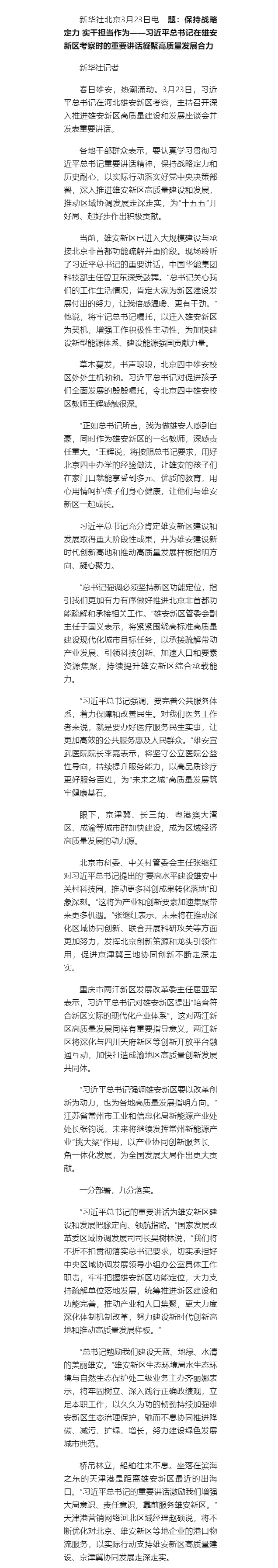 总书记在雄安新区考察时重要讲话凝聚高质量发展合力