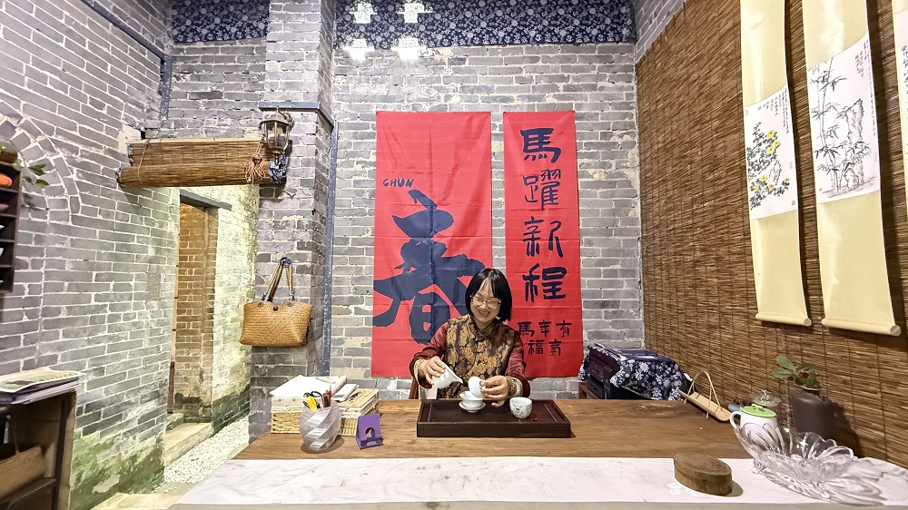这份厚重的历史文化底蕴,正吸引越来越多文化工作者走进古村老宅。与莘野庐工作室相隔不远的广东粤湾环境科技有限公司,同样由一栋老村屋改造而成。170多平方米的空间里,复古雕花木门、古朴墙面、雅致庭院,与现代办公设施相映成趣。该公司负责人谢莹介绍,除了办公区,还设计了吧台、餐厅和她的个人工作室,空闲时练书法、看书,将工作与生活融为一体。