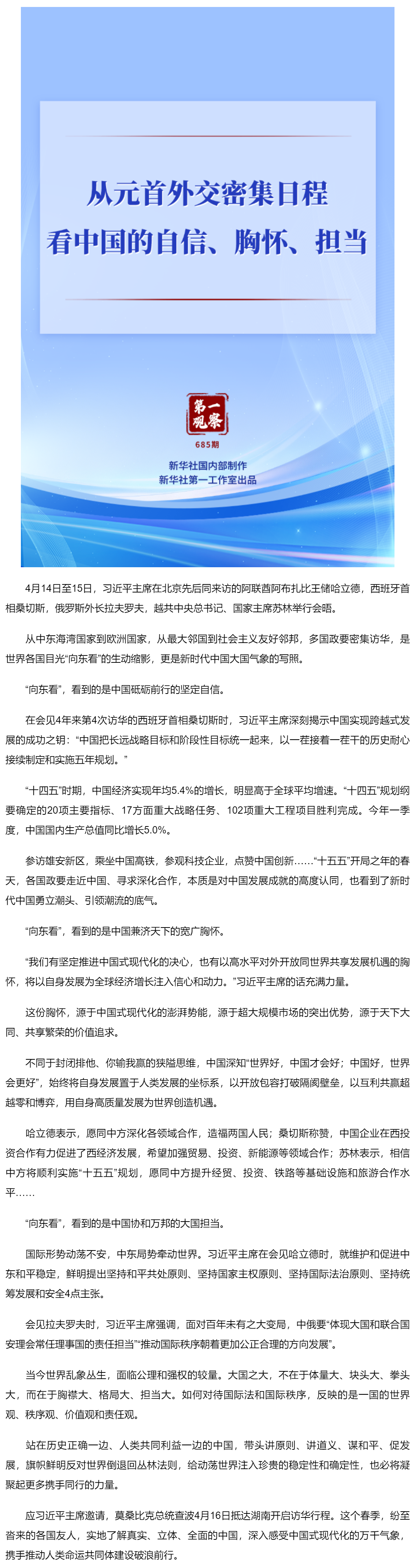 第一观察丨从元首外交密集日程看中国的自信、胸怀、担当
